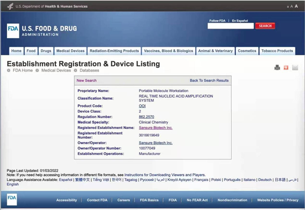 1月4日,350vip浦京集团生物四通道iPonatic核酸检测分析仪获得美国FDA认证,这是继获得中国NMPA批准、欧盟CE等认证之后,获得的又一全球权威认证。
